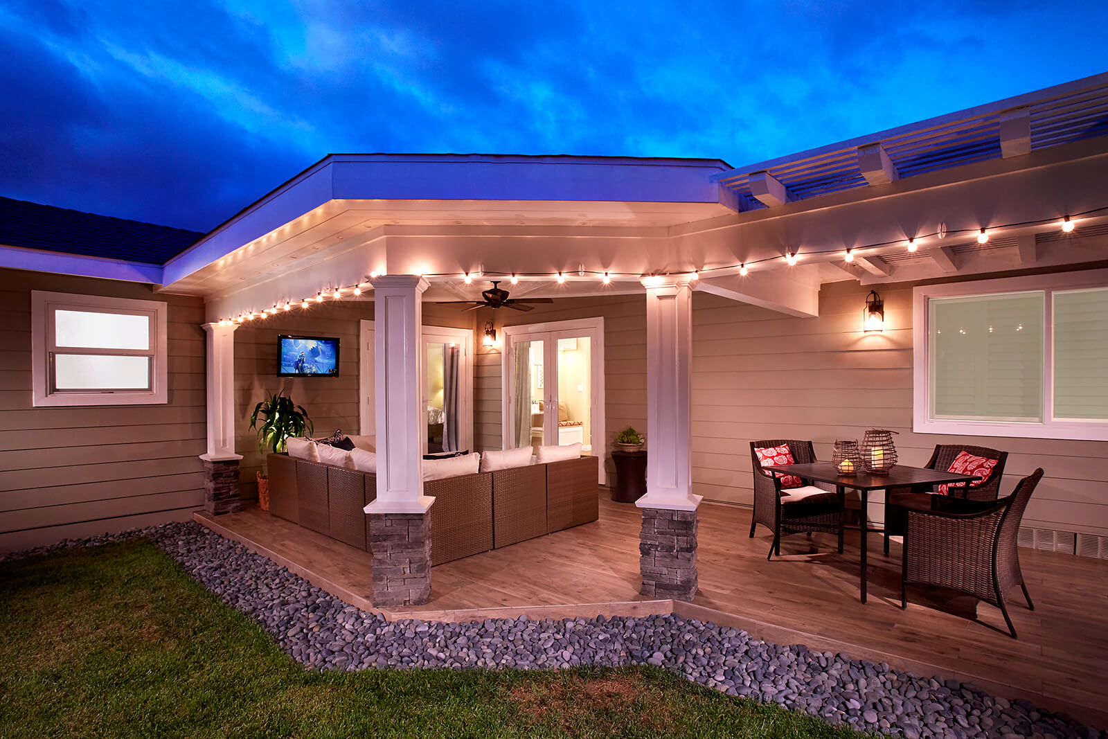 We were quickly able to identify the main issues. The existing home was limited because it didn’t take advantage of the connection to the outdoors. A narrow hall led to an overgrown rear yard. Simply by enlarging the transition to the rear yard, we were able to improve the connection between the interior and the beautiful Southern California outdoors. This also gave us the ability to create a welcoming “outdoor room,” perfect for both entertaining and as a much-needed second living room. Since patio space tends to have a much lower square footage cost than interior space, we were able to accomplish this in a cost-effective way.